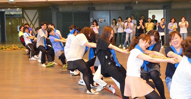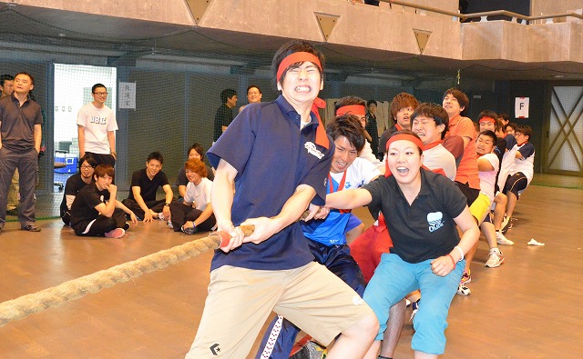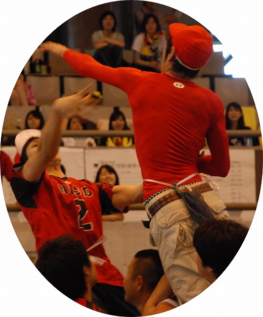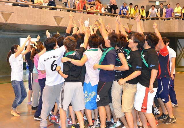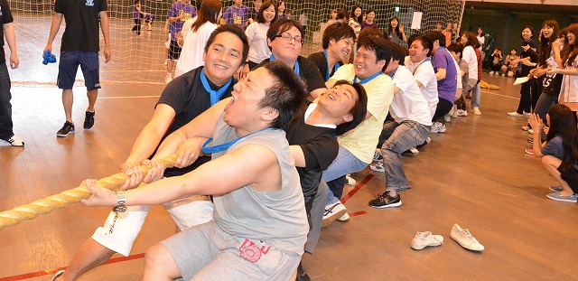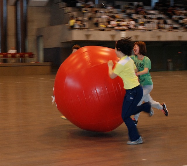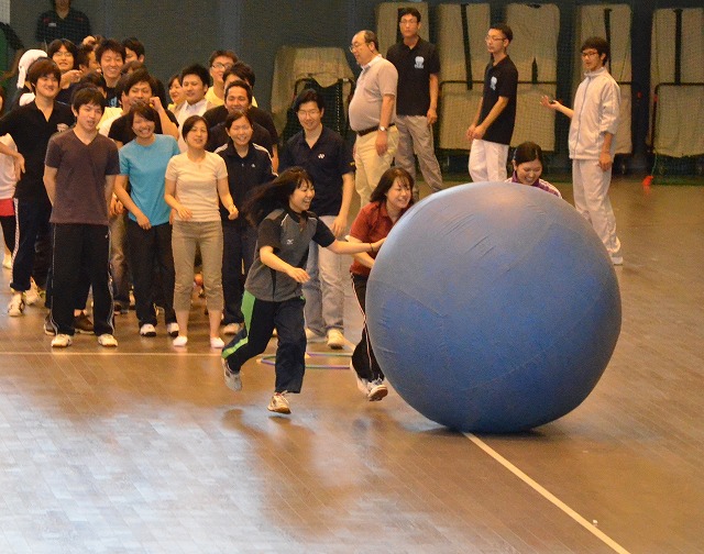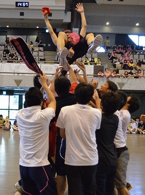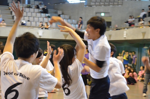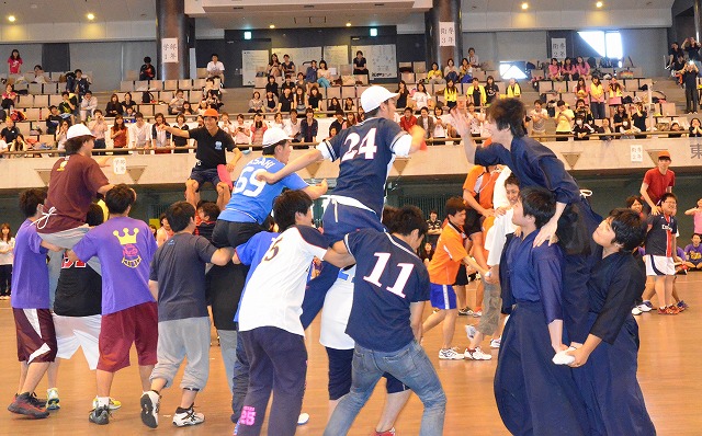 | ドッジボ−ル,綱引き,障害物リレーの他に,クラブ対抗騎馬戦,大玉転がしなどの団体競技と個人競技があります。毎年,5年生を中心に球技大会実行委員会が組織され,各クラブ,学年から実行委員,補助委員が選出され,予算案の作成や大会の企画,設営のすべてが学生によって運営されます。 |
