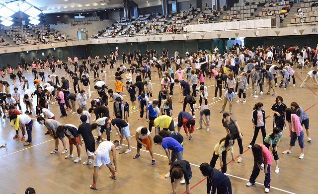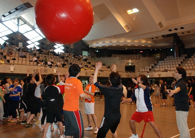 | 球技大会は,新入生の歓迎及び教職員と学生相互の親睦を深めることを目的 とした行事で,附属の歯科技工専門学校,歯科衛生専門学校との共催で行われま す。本学部のほぼすべての教職員及び学生が集まることができる唯一の行事で,東京都足立区にある東京武道館で行われました。 |