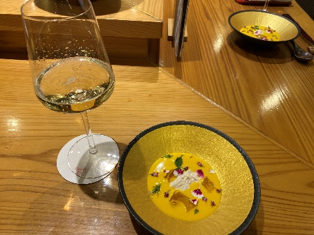 全ての料理にキラリと光るものがあり,中でもナスとゴボウのピューレに載せた鰻のソテーは忘れられない味覚体験でした。合わせた狸のワインもよかったな。